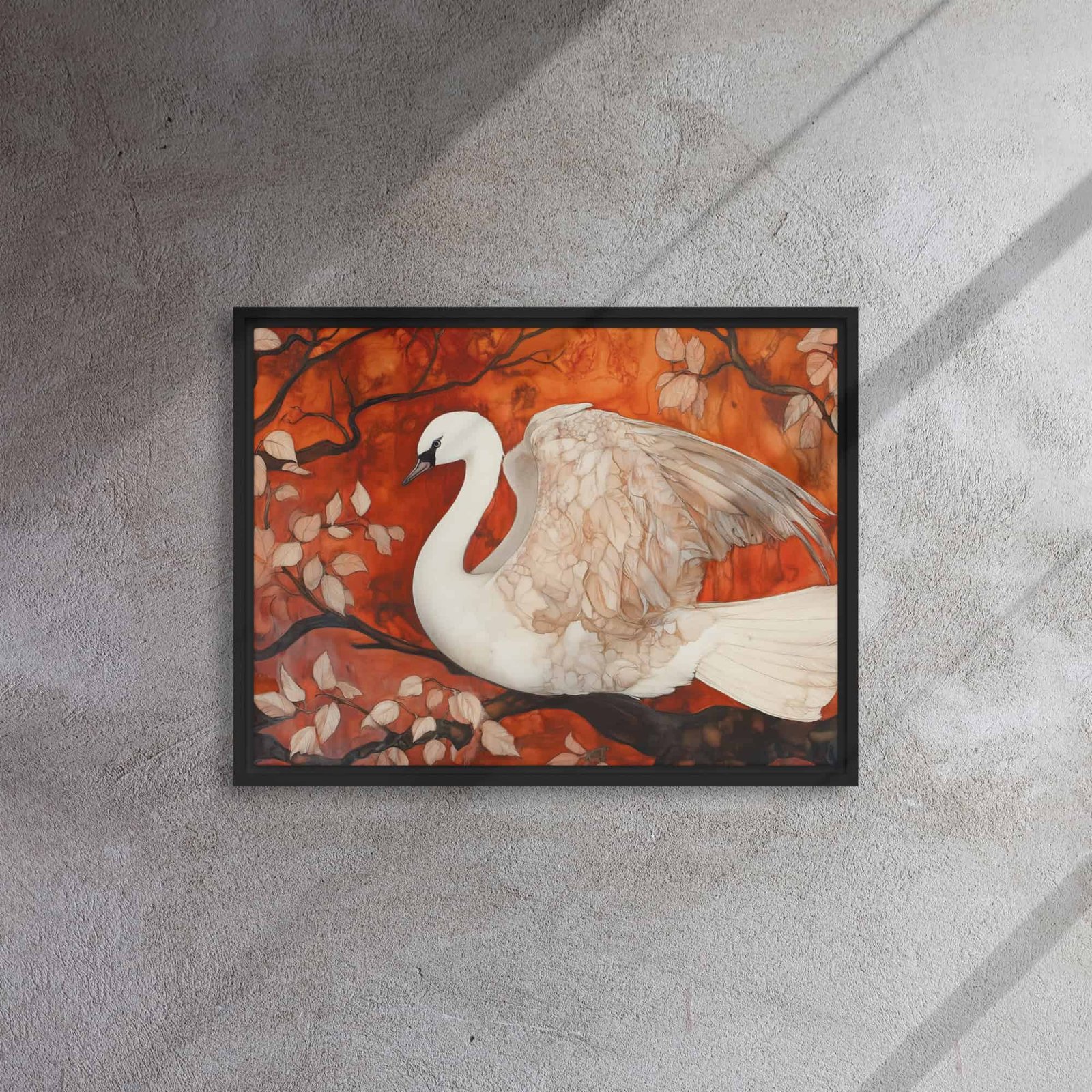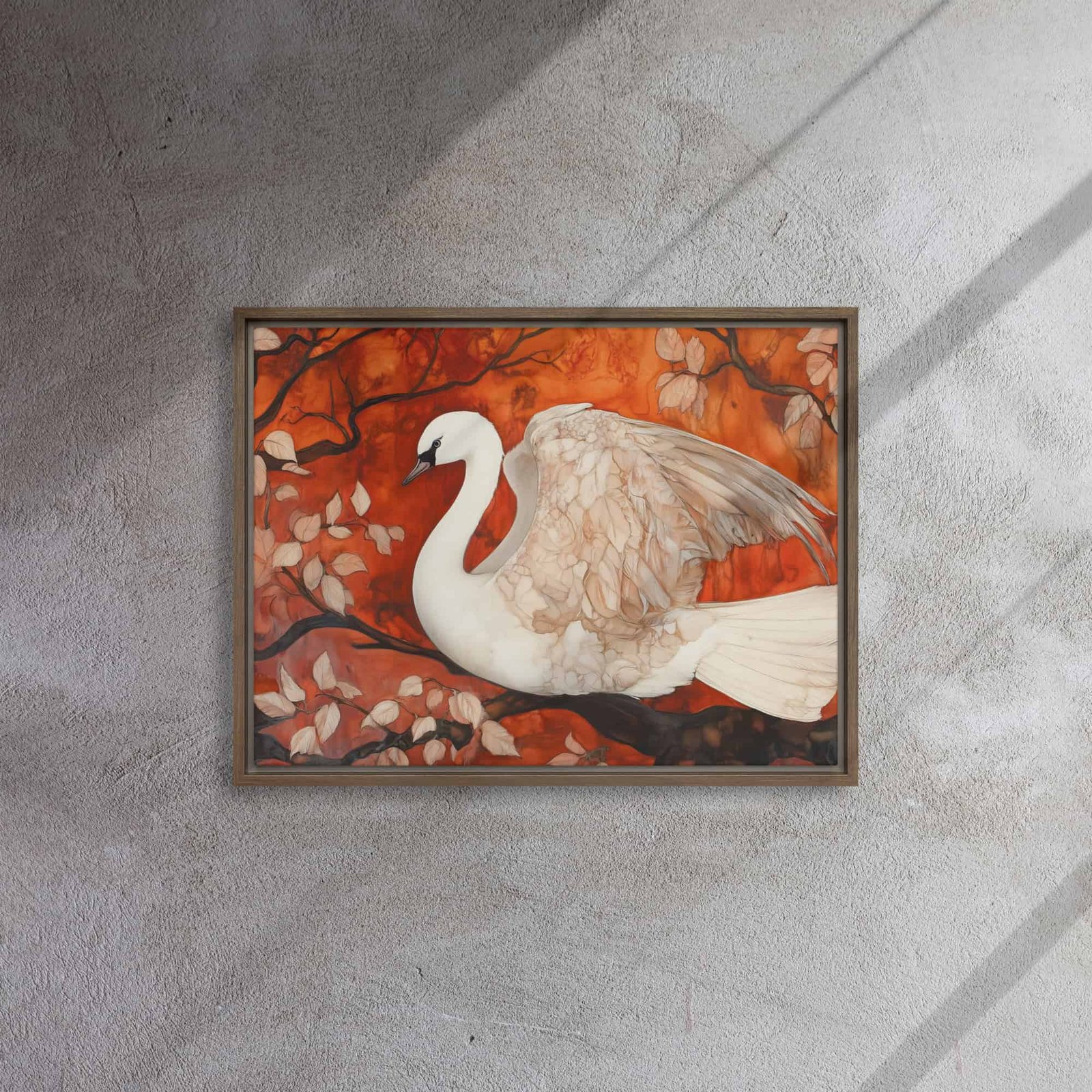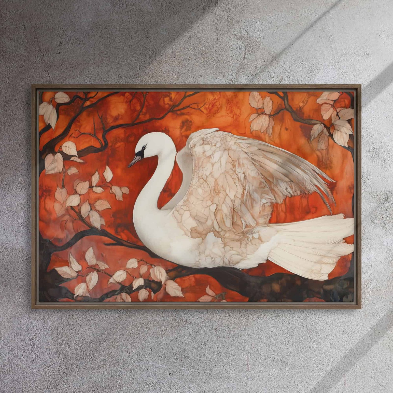 Elevate your environment with “Autumn Swan Elegance Art”!