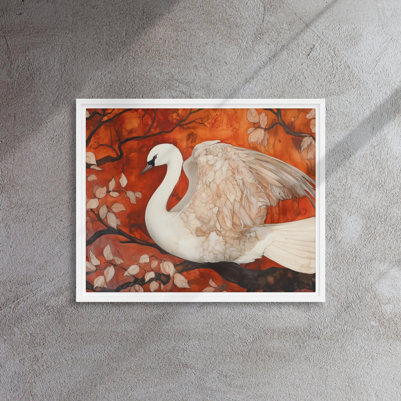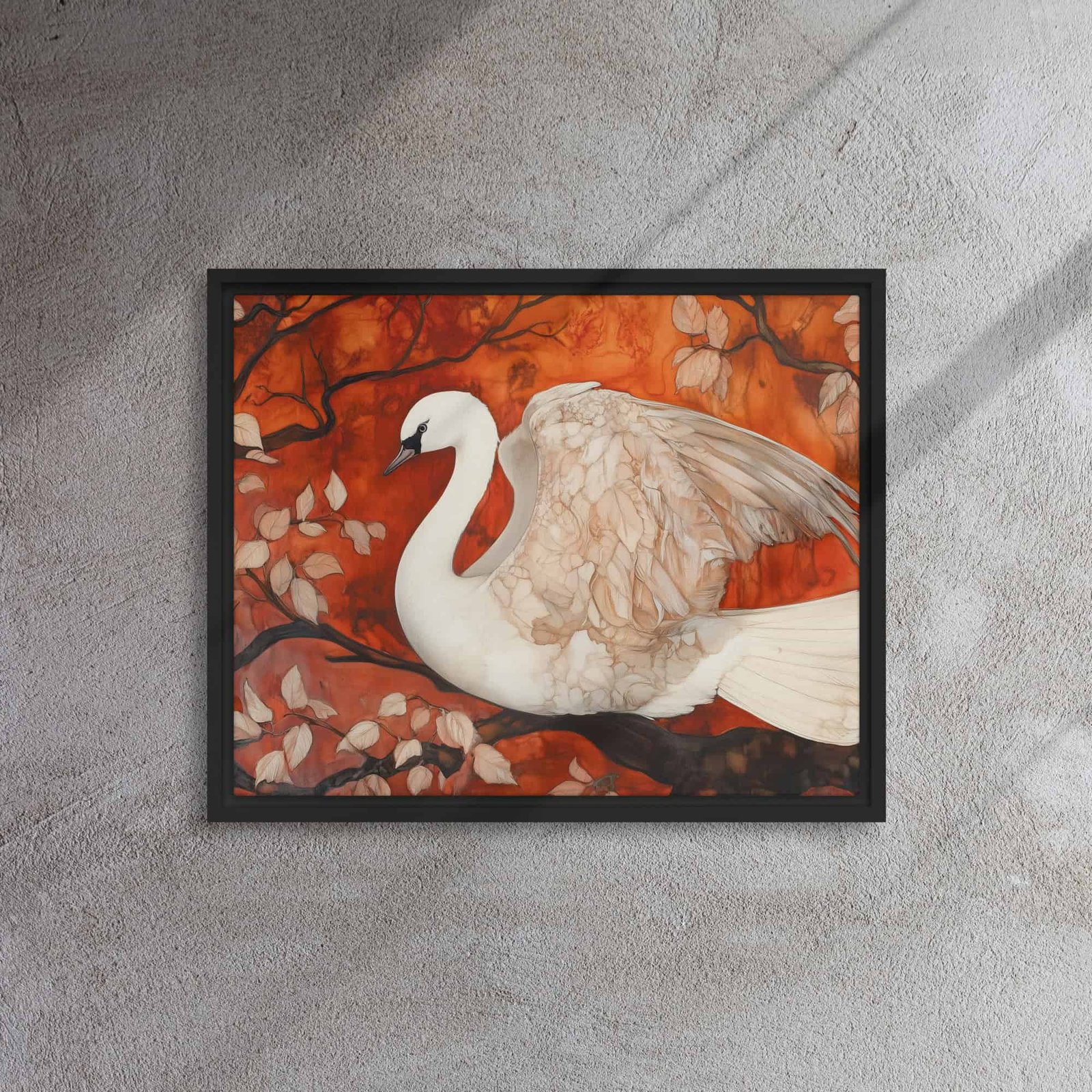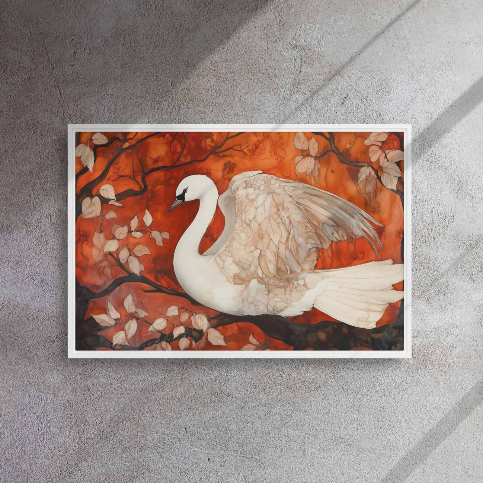 Elevate your environment with “Autumn Swan Elegance Art”!