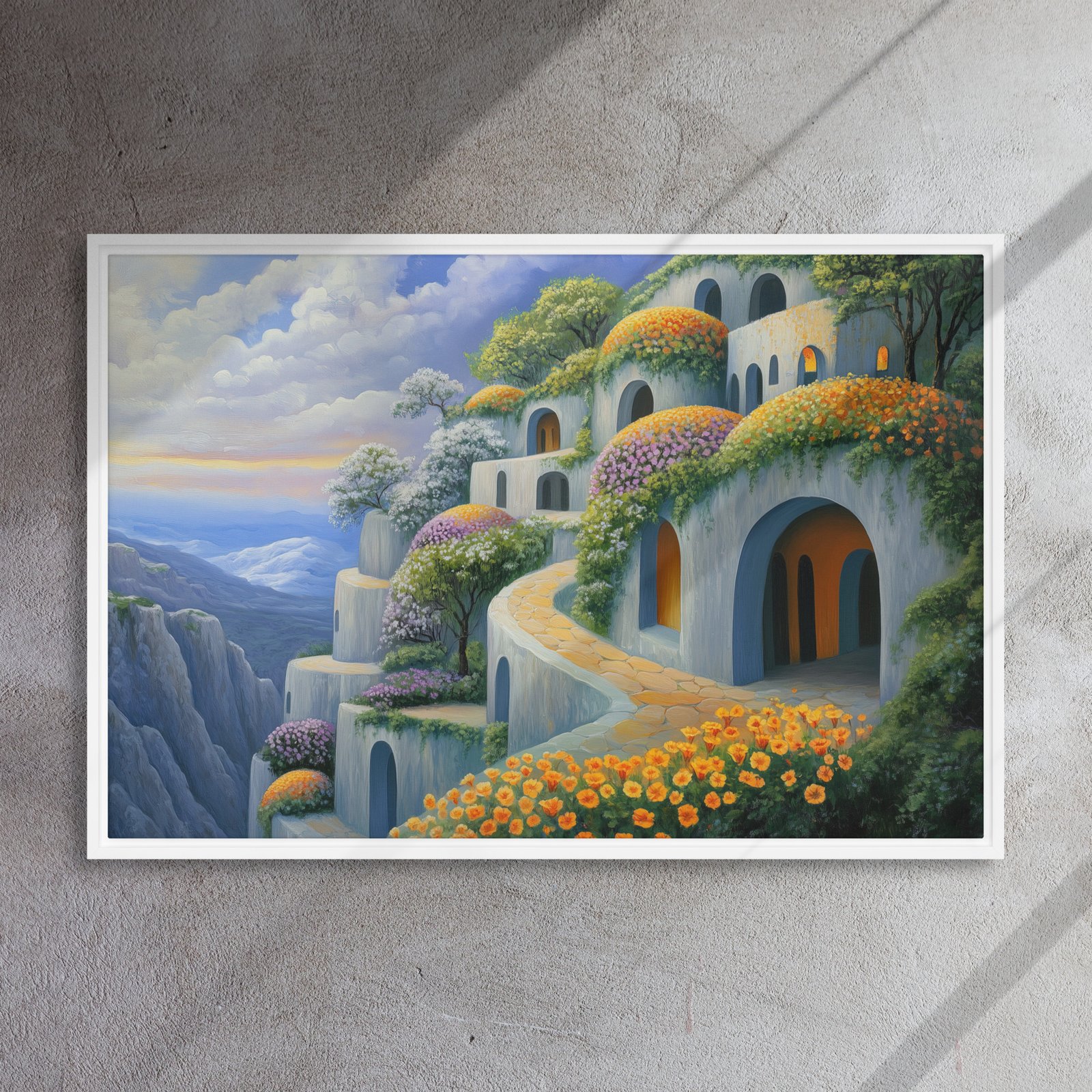 Note: Brown and black frames have a black inner edge; white frames have a white inner edge. Each painting is made to order, supporting sustainable choices.