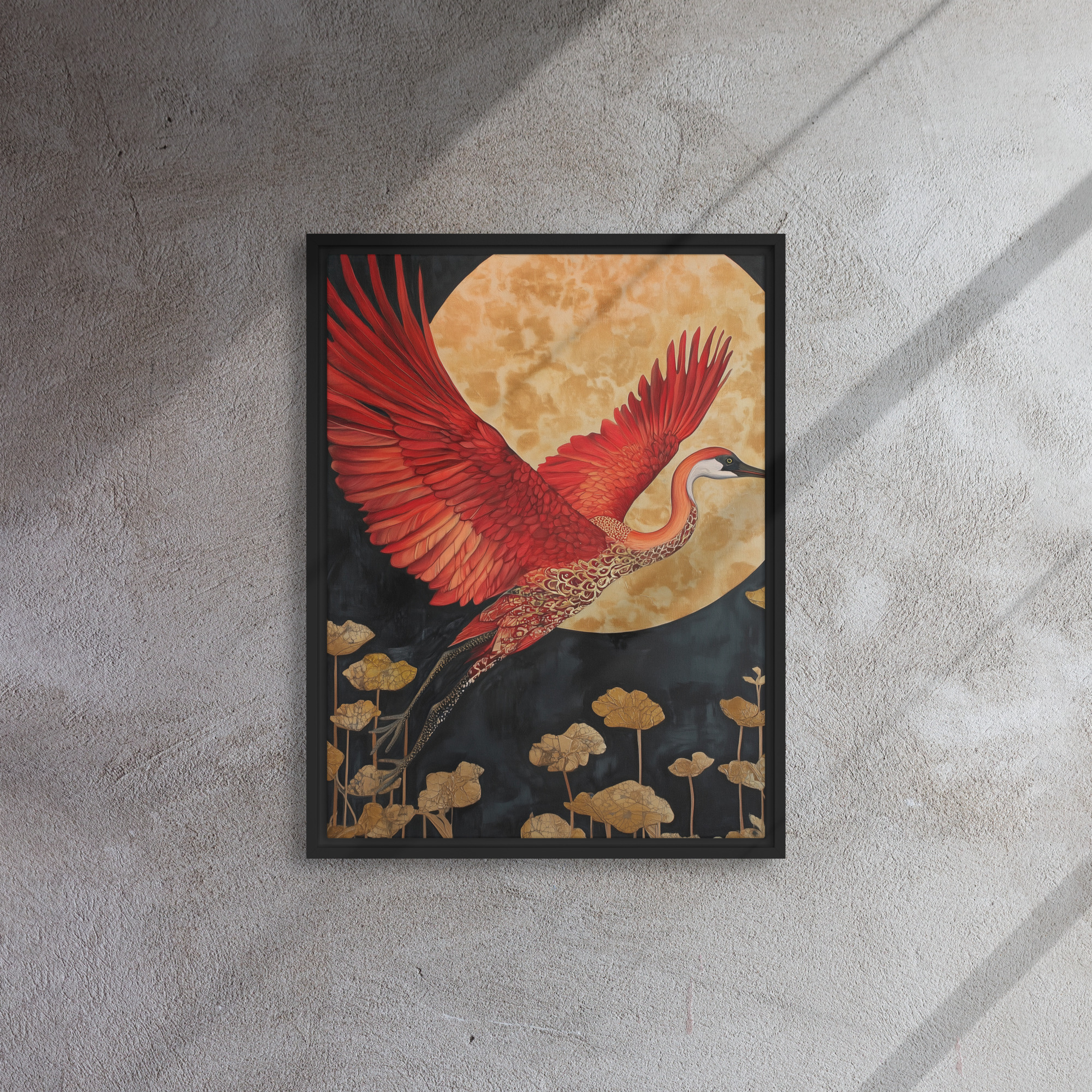 Elevate your environment with “Crimson Heron Moon Art”!